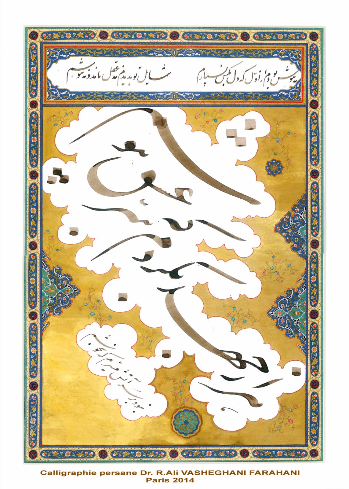 Mais en écoutant Maître Vasheghani commencer à me donner sa définition de son propre rapport à la calligraphie, je perçus d’emblée le son d’une voix qui n’avait absolument rien à voir avec celle de ces lettrés plus ou moins pontifiants que le jargon d’aujourd’hui nomme les sachants et qui pérorent d’une tribune à l’autre en nous berçant de leur leur présupposée supériorité d’experts.
